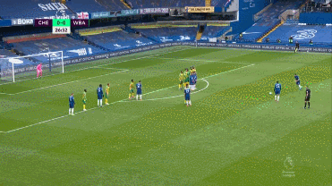 27' 马科斯-阿隆索主罚右路定位球击中立柱,普利西奇跟进补射破门!蓝军1-0领先西布朗。