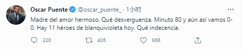 在接下来的比赛中,巴拉多利德球员普拉诺在防守登贝莱时吃到红牌直接被罚下场,对于这次判罚,Oscar Puente表示:“真是耻辱,第80分钟我们还保持着0-0的比分,今天巴拉多利德是11个英雄在战斗。真肮脏。”