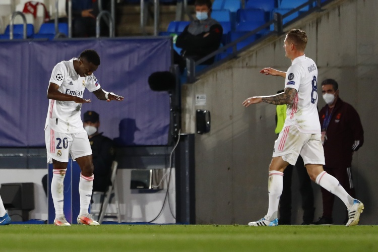 今天凌晨欧冠八强战开打,皇马率先出战战胜利物浦。本场比赛巴西小将维尼修斯完成双响,在攻入第一粒进球之后,他对送出绝妙助攻的克罗斯来了一次“膜拜”。