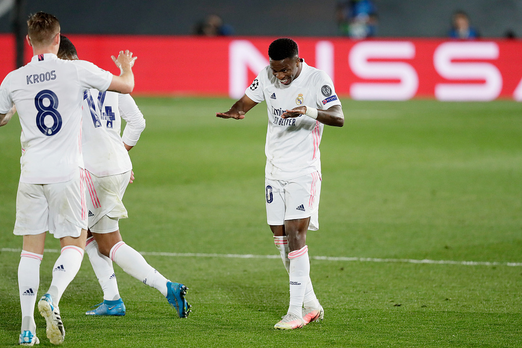 这粒进球让皇马在主场首开记录,同时也让维尼修斯成为欧冠史上首位在1/4决赛中破门的00后球员。完成进球后,维尼修斯跑向送出长传制导的克罗斯,做了“膜拜”的动作: