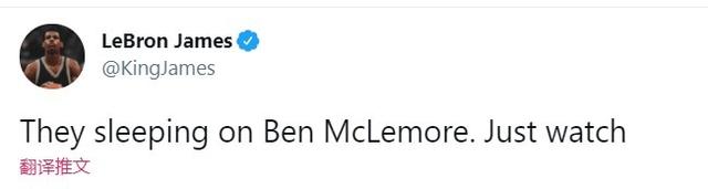 湖人随队记者Law Murray随后挖出了詹姆斯2013年称赞麦克勒莫的推特。詹姆斯在13年麦克勒莫参加选秀时写道:“他们都轻视了麦克勒莫。看着吧。”值得一提的是,詹姆斯与麦克勒莫的经纪人都是里奇-保罗。