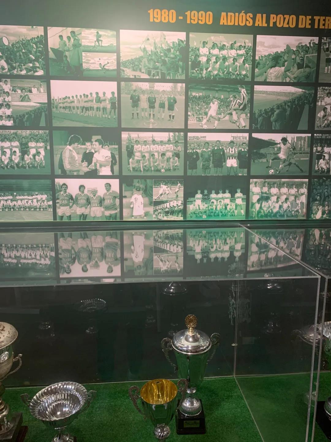 他们的主场入口处是在球门后面,进门处看上去很破,但进去之后却相当令人震撼,1940成立的俱乐部,仅仅踢了6年的西甲,但他们同样保存了建队至今球队所有级别的奖杯和荣誉照片,新来的迪马塔不太了解这家俱乐部,一看到这么多奖杯他还猜测这是不是曾经的西甲豪门。连见多识广体育总监鲁菲特都和我们一起在这里驻足了好久。