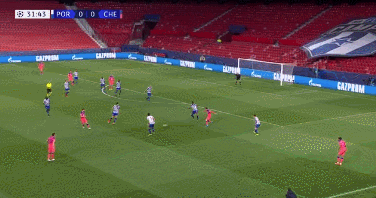 第43分钟,波尔图再获角球机会,佩佩门前头槌被门迪扑出底线。