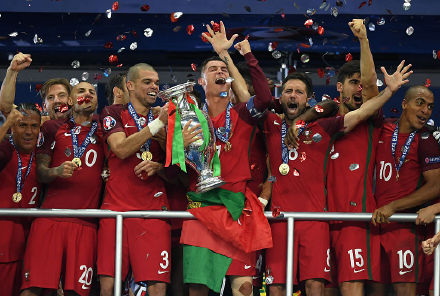 2016年欧洲杯,葡萄牙状态一路走高,最终首次捧杯。葡萄牙小组赛阶段表现挣扎,前两场接连战平,出线形势岌岌可危,最后一轮对阵匈牙利,C罗2射1传助葡萄牙3-3战平匈牙利,最终涉险晋级。葡萄牙进入淘汰赛后逐渐起势,他们先是加时击败克罗地亚,随后又历经点球大战淘汰波兰。半决赛中,C罗一传一射闪耀全场,葡萄牙2-0战胜威尔士闯入决赛。决赛对阵强敌法国,C罗伤退泪洒赛场,葡萄牙几乎走到绝望边缘,但加时赛中替补奇兵埃德尔一击制胜,葡萄牙历经一路坎坷最终登顶欧洲。