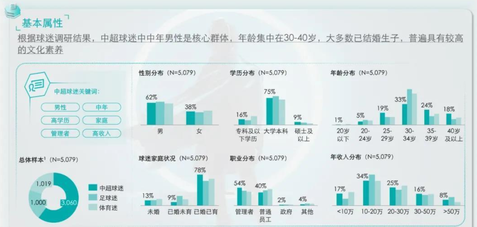 数据显示54%的中超球迷是管理者,87%的球迷已婚,球迷大学本科率也是高达84%。看来中超真的是事业有成、家庭幸福的大佬们看的啊,单身狗和打工人们也拖了后腿。