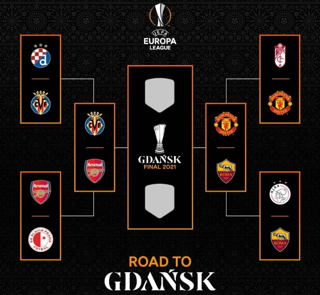 在今天凌晨结束的4场欧联杯1/4决赛中,曼联2-0双杀格拉纳达,阿森纳客场4-0血洗布拉格斯拉维亚,罗马1-1战平阿贾克斯,比利亚雷亚尔则是2-1同样双杀了萨格勒布迪纳摩,在半决赛中曼联将对阵罗马,而阿森纳的对手则是由前任主帅埃梅里率领的比利亚雷亚尔。