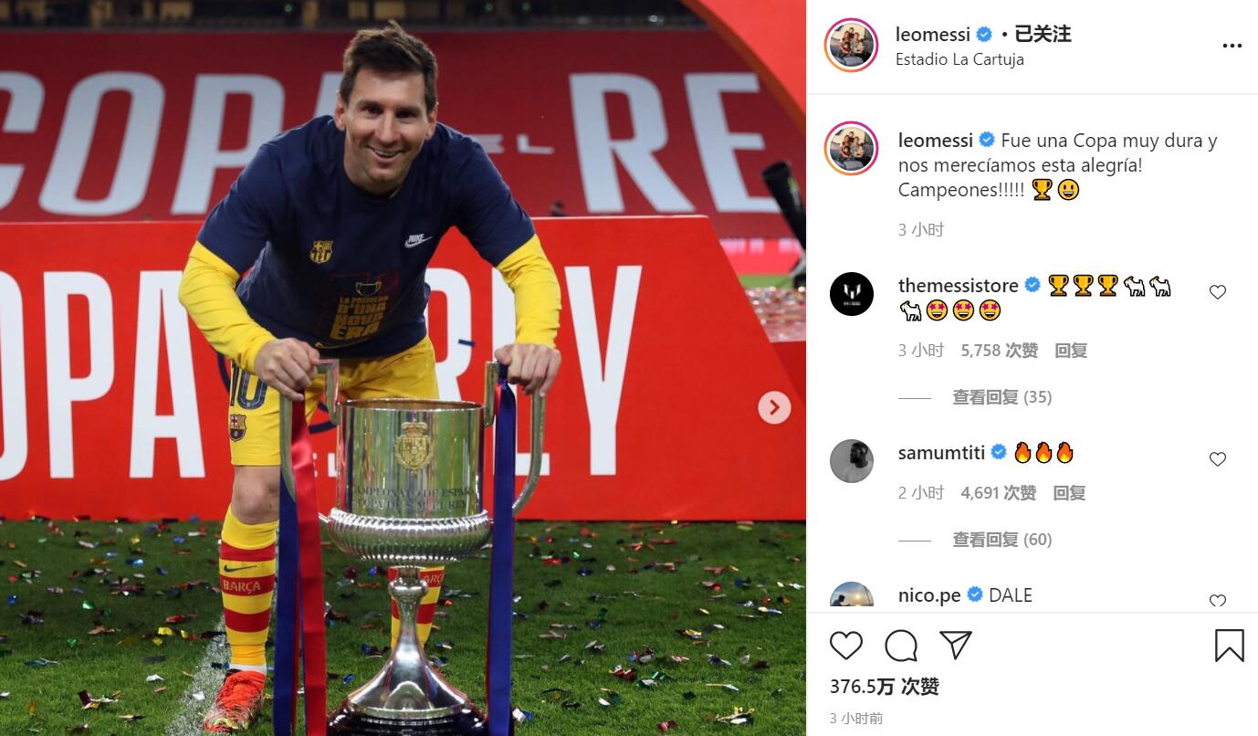 梅西赛后也难掩夺冠的喜悦之情,更新了个人的Instagram:“这是场非常艰难的比赛,但最终我们还是收获了这种喜悦。我们是冠军。”