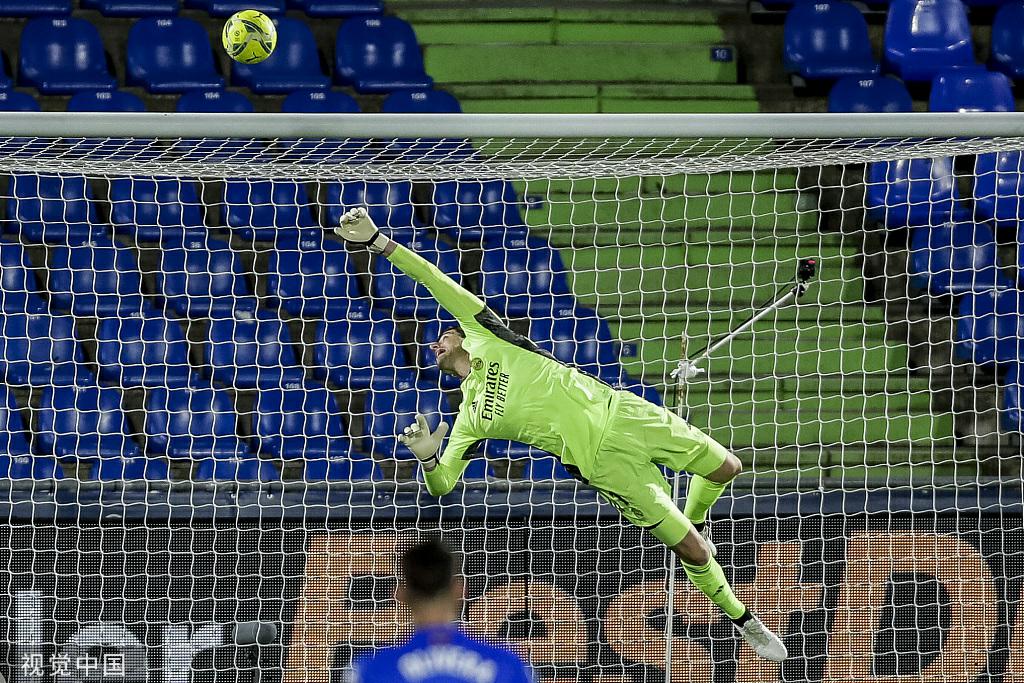 本轮西甲联赛对阵赫塔菲,皇马在残阵出击的情况下客场艰难守得一场0-0平局,本场的头号功臣无疑当属门将库尔图瓦——开场不久他便扑出了奥利韦拉近在咫尺的门前垫射,下半时又先后奋勇化解了于纳尔和马克西莫维奇的远射攻门。全场比赛,库尔图瓦先后6次作出关键扑救力保球门不失,他也在赛后被SofaScore打出了全场最高的8.4分。