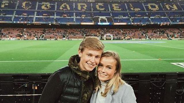 2019年1月24日,是巴萨正式宣布以7500万欧元从阿贾克斯签下弗兰基-德容的日子,消息宣布后米琪第一时间在Ins上向爱侣表示了祝贺——她发布了一张2015年10月自己与德容在诺坎普观赛的合影,并写道: