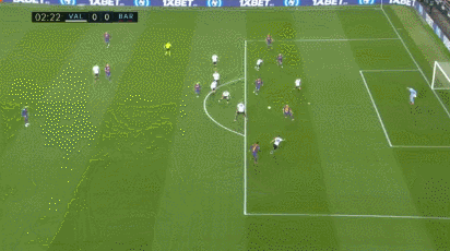 3' 格列兹曼弧顶隐蔽直塞,德容禁区内做球给佩德里,小将无人盯防情况下不停球直接起脚打门,可惜稍稍偏出球门。
