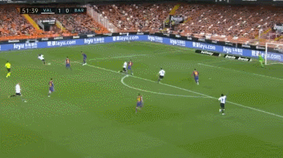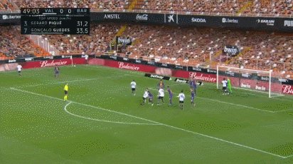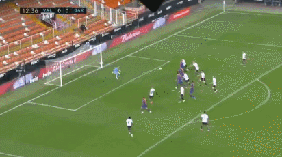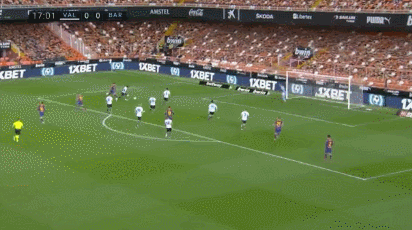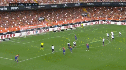 20' 瓦伦西亚快速反击,左路加亚大幅度插上随后左脚打门,偏出远端门柱。