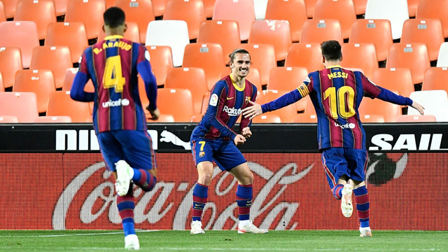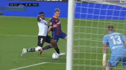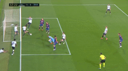63' 德容头球攻门被西莱森扑出,格列兹曼迅速跟进补射得手,巴萨2-1领先瓦伦。