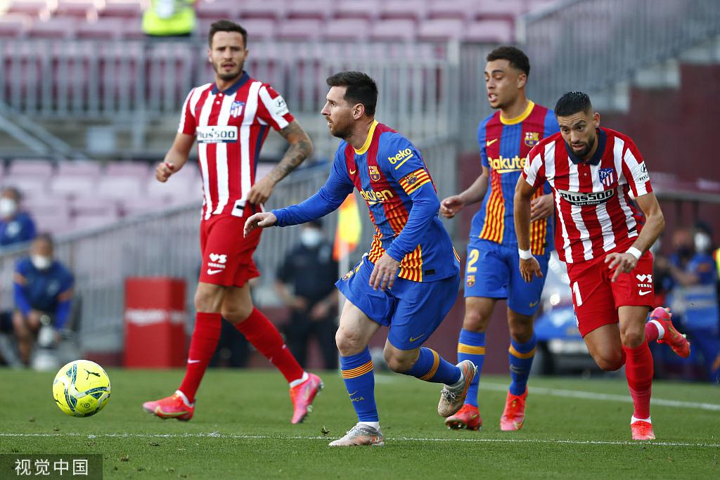 2020/21赛季西甲第35轮——巴塞罗那vs马德里竞技:上半时,勒马尔和布斯克茨先后伤退离场,科雷亚抢点包抄造险,梅西单骑闯关一条龙射门偏出;下半时,罗纳德-阿劳霍头球破门被判越位无效,梅西任意球两度制造威胁,奥斯曼-登贝莱尾声阶段抢点头球高出>>