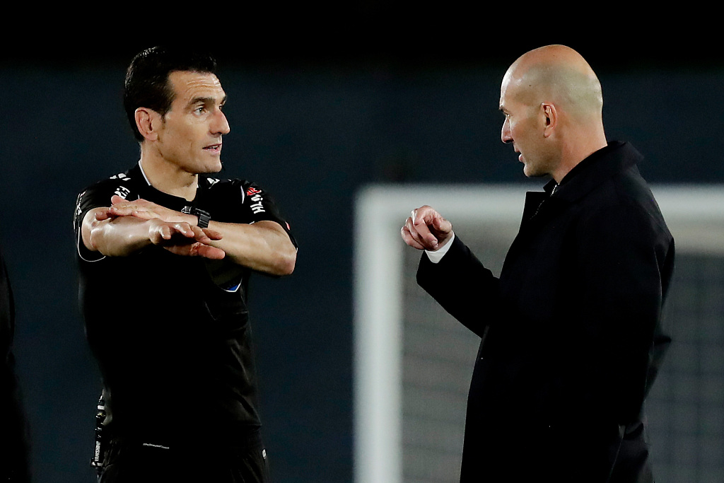 本场比赛哨响之后,齐达内非常不满裁判的判罚,罕见地上前去找裁判理论。但齐达内在赛后的新闻发布会上依旧显得非常生气,这证明他与裁判的交流并没有得到令自己满意的答案。