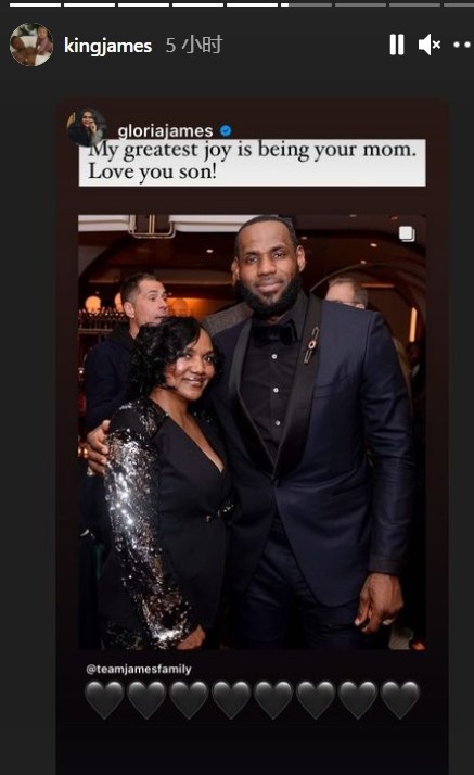 随后詹姆斯转发并回复道:“#爱心#爱心#爱心#爱心#爱心#爱心#爱心#爱心,我的荣幸!妈妈,我爱你!”