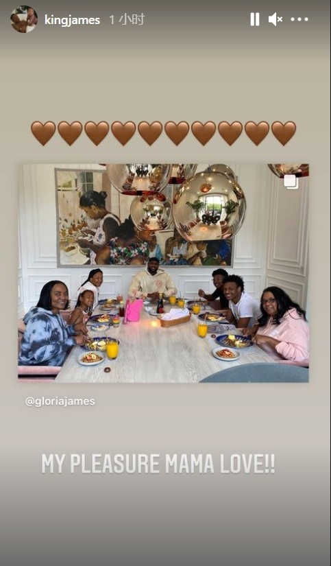 今日是美国当地时间母亲节,詹姆斯在家中组织了一次节日聚餐。随后詹姆斯的母亲Gloria在个人社媒晒出了聚餐的照片,并与儿子进行了互动。