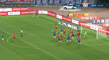第62分钟,申花角球机会,莫雷诺后点侧身凌空打门被门将化解。