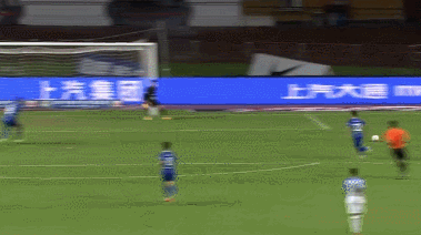第34分钟,蒂亚戈重炮轰门,邵镤亮指尖微微碰到,皮球击中横梁后弹出。