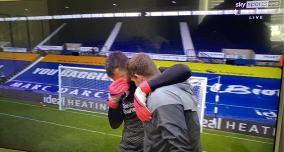 在赛后,有镜头捕捉到了阿利松在场边痛哭,随后克洛普赶来拍了拍这名门将的背,与他拥抱在了一起。