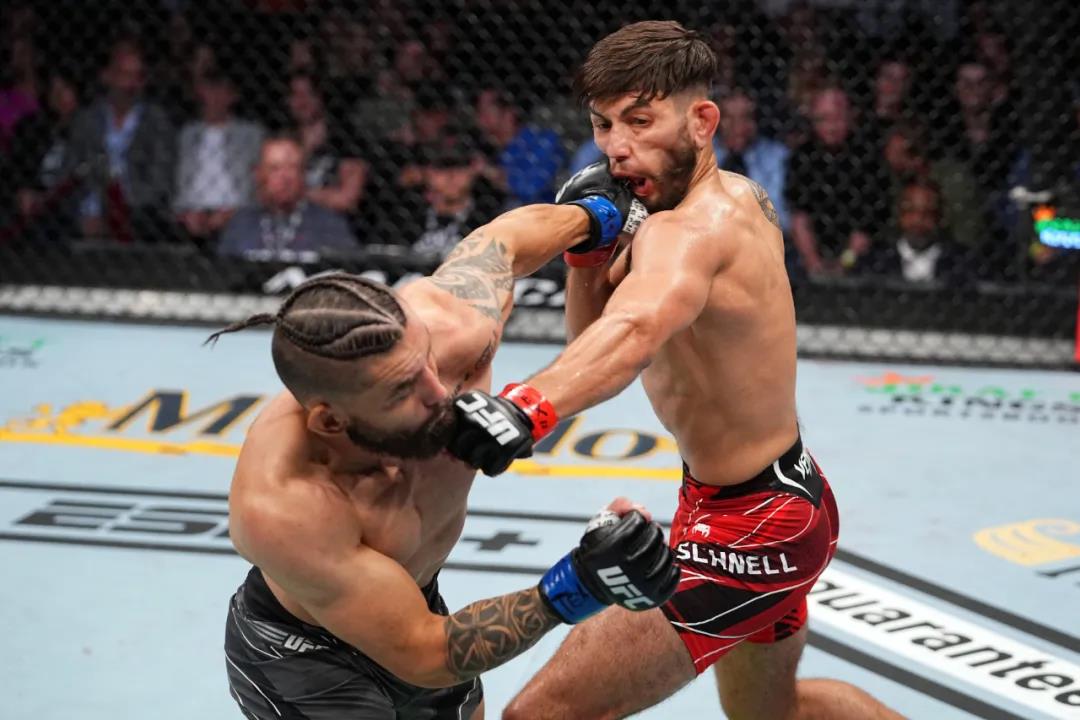 面对实力出众、排名接近的“救场选手”、巴西名将波托里恩,缠斗出身、站立偏弱的施奈尔不仅失去了地面技术优势,而且由于比赛临时改在雏量级进行,令他在体重和力量方面也有一定的劣势。尽管施奈尔已经足够顽强、拼尽全力,但在站立、地面全方位遭遇压制的局面下,最终不得不吞下失利的苦果。