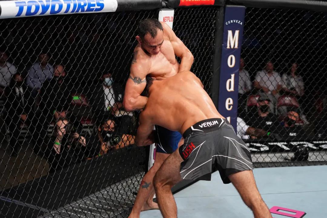 年龄的增大、身体的衰老、以及与盖奇一战中,承受那些密集而沉重的头部打击,让托尼-弗格森的身体机能和竞技状态发生了断崖式下滑。上一场被奥利维拉压制,这一次被大流士碾压,都清楚的说明这位曾经与巅峰期“小鹰”齐名的天才斗士,已经到了应该离开的时候。本场比赛中,被锁腿后无奈又倔强的痛苦硬撑,几乎就是弗格森如今职业状态的真实写照。