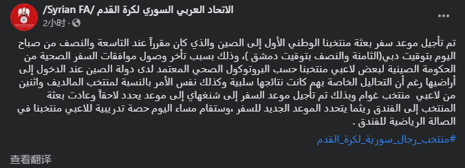 叙利亚足协官方确认,由于马尔代夫球员感染新冠病毒,导致马尔代夫以及叙利亚两队无法获得健康许可,原计划一同包机来华的两队航班遭取消。目前两队正在等待最新的航班行程安排。
