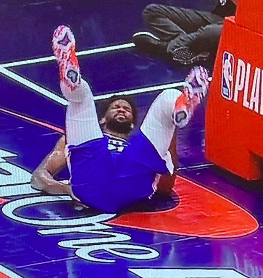 导语:恩比德右膝盖酸痛提前退赛:惨遭大帽后重摔倒地表情痛苦