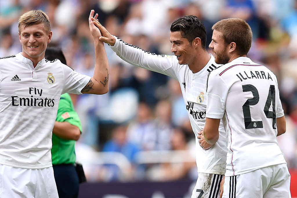 在安切洛蒂手下,本泽马交出46球31助攻的全面数据,贝尔也能够贡献39球31助攻,而C罗则在短短两年内斩获112粒进球,宛如天神下凡。除去称霸一时的BBC组合之外,马塞洛、迪马利亚、伊斯科、J罗等球员也得到了信任,成为球队不可或缺的一部分。而著名的“典礼中场”也在安帅手下渐成雏形:莫德里奇贡献3球14助攻,而克罗斯仅仅效力一年便送出了14次助攻,卡塞米罗、赫迪拉以及伊利亚拉门迪作为防守型后腰,所获得的机会也相对均衡。
