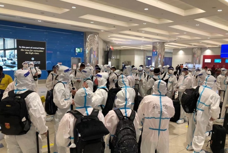 国足与关岛队一同抵达迪拜!防护服全副武装不敢大意