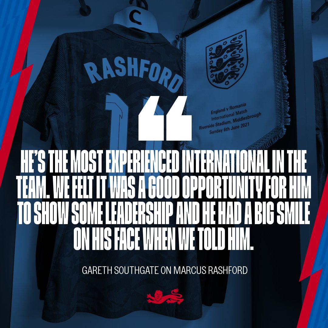 23岁218天的拉什福德于今日作为英格兰的队长在对阵罗马尼亚的友谊赛中首发出战。