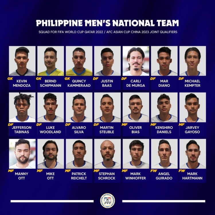 此次菲律宾队由队长施罗克领衔。此前曾入选德国国青队,并在德甲美因茨效力过,目前在德乙波鸿踢球的霍特曼,不在这次大名单中。