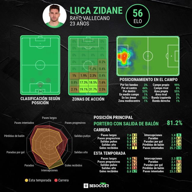 本赛季卢卡·齐达内效力于西乙球队巴列卡诺,共出场13次,大多数时间担任替补门将。赛季末由于球队主力门将迪米特列夫斯基代表北马其顿出战欧洲杯,卢卡也成为首发门将。过去6场比赛连续首发,其中包括两场与莱加内斯的升级附加赛半决赛。