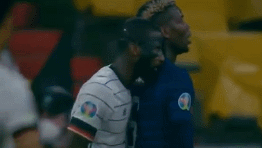 第45分钟吕迪格贴身防守博格巴,两名球员亲密接触,德国中卫情至深处甚至上手袭胸,法国球星被突如其来的“咸猪手”袭击,痛苦地大喊起来。