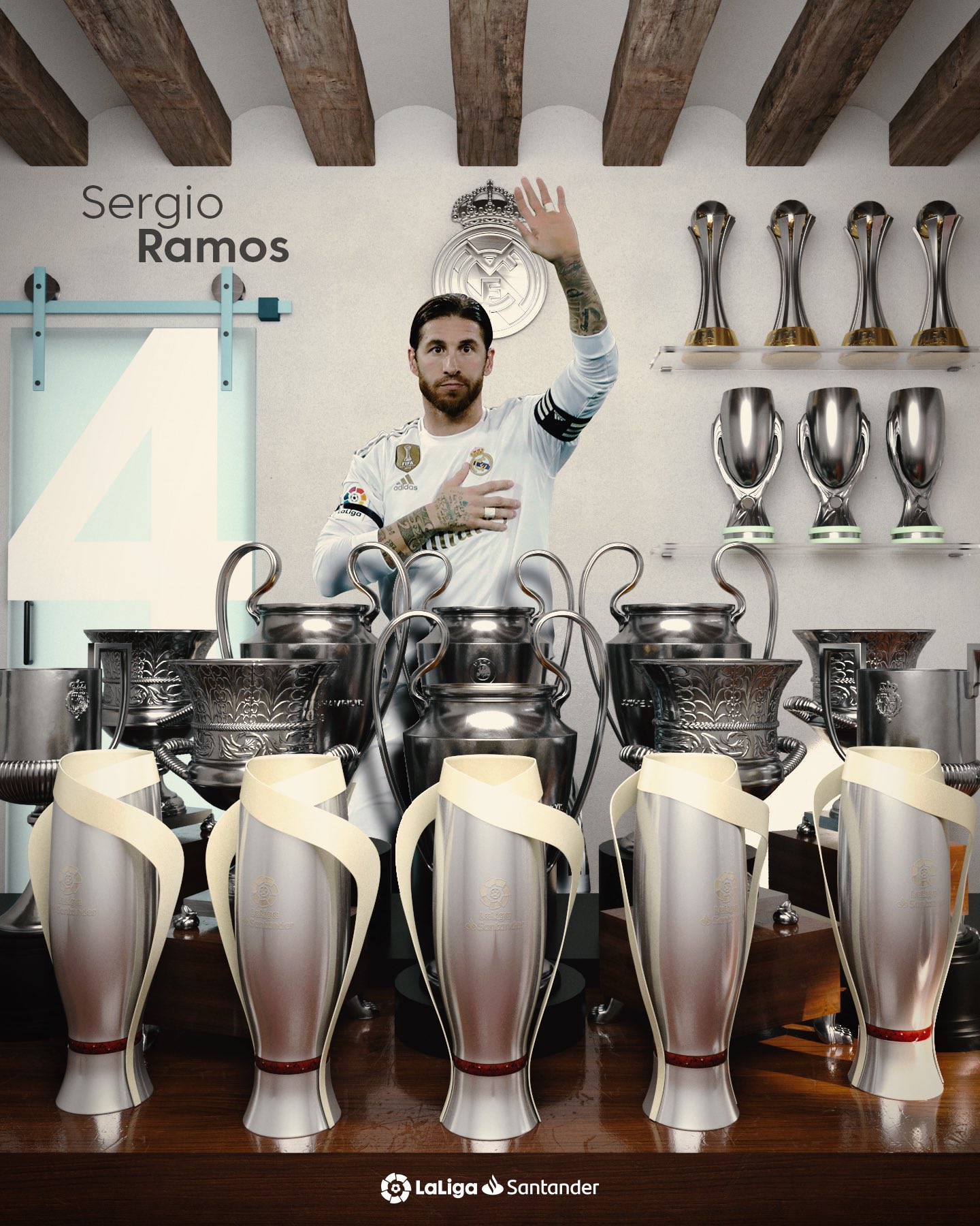 传奇终将再见!拉莫斯泪洒告别会后与奖杯合影留念