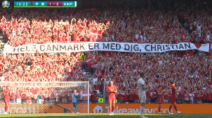 第10分钟,主裁判鸣响哨声暂停比赛,全场集体鼓掌祝福上一场出现昏厥情况、目前仍处于康复中的丹麦核心埃里克森。