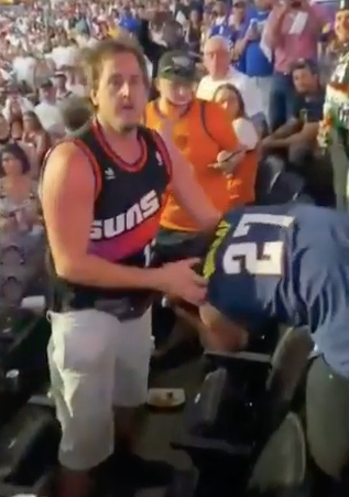 北京时间6月18日,太阳队明星球员布克在推特上寻找一位球迷。这位球迷此前在太阳队在掘金的第三场比赛中,面对掘金球迷的挑衅和偷袭,他在最后几分钟不得不反击击退掘金队的那两位球迷。