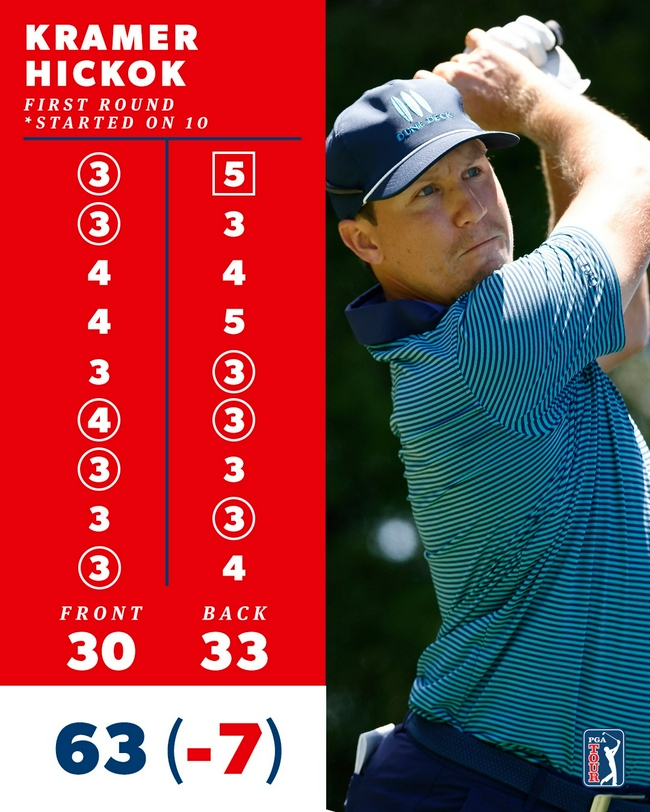 克莱默·希科克今日从后九洞出发,出门便失误吞下柏忌。不过之后在14号、15号和17号洞抓到小鸟,转场后又收获了5只小鸟,全天8鸟1柏忌。