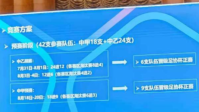 北京时间7月5日,足协杯相关赛程出炉,中乙预赛将于7月31日起进行。