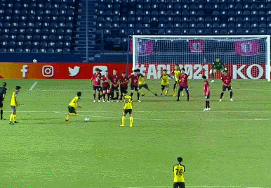 第78分钟,广州队获得前场任意球机会,饶晨直接打门高出。