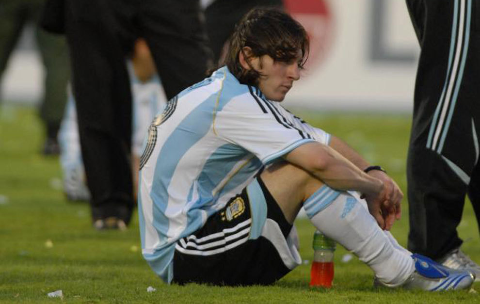 转过年来的2007年,梅西又迎来了自己的首届美洲杯,与世界杯时不同,这位20岁的少年天才已经成为球队主力。阿根廷5场比赛攻入16球仅失6球,顺利进入决赛,梅西在自己的首届美洲杯上迎来了首次国家队大赛决赛。然而决赛中的潘帕斯雄鹰变成了潘帕斯小鸡,面对巴西0-3脆败。