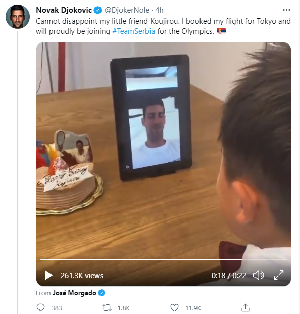 北京时间7月16日,世界第一德约科维奇宣布在社交媒体宣布他已经预定了前往东京的机票,即将加入塞尔维亚奥运团队,来冲击东京奥运会的金牌。第4次征战奥运,这一次德约再一次向金满贯发起冲击。在收获2021澳网、法网和温网后,很多球迷希望看到年度金满贯时刻,德约现在也有可能梦想照进现实。