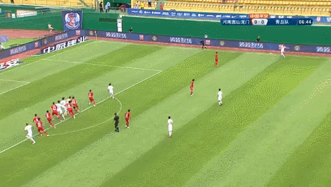 比赛第49分钟,河南嵩山龙门获得角球机会,卡兰加高高跃起头球破门!十人河南1-0领先青岛!