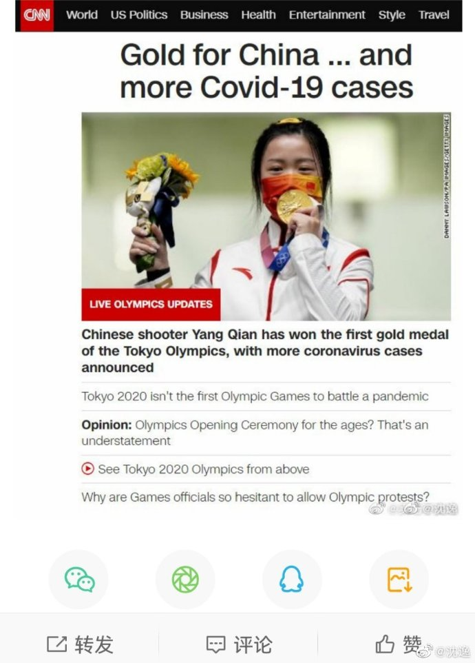 向佐就CNN不当言论的发言得到了广大网友的力挺。网友纷纷表示,希望中国国歌能够响彻日本东京奥运会,并对CNN的无底线标题进行了谴责。在CNN的原文中,中国选手杨倩夺金的照片标题直译为《金牌归中国...以及更多的新冠案例》,有意误导读者东京奥运会新增案例也来自中国。