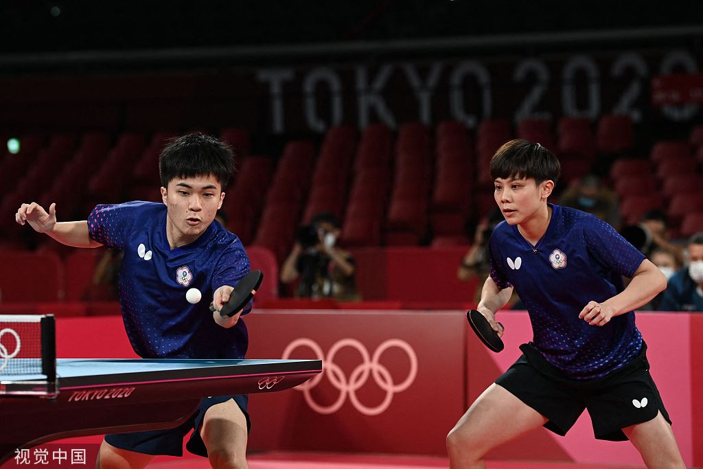 北京时间7月26日,乒乓球混双铜牌战,中国台北组合林昀儒/郑怡静以4-0(11-8、11-7、11-8、11-5) 击败法国组合莱贝松/袁嘉楠获得铜牌!