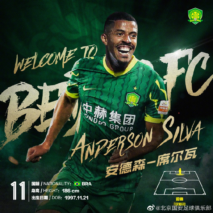安德森·席尔瓦加盟北京国安足球俱乐部,2021赛季他将代表北京国安出战中超、足协杯等赛事。