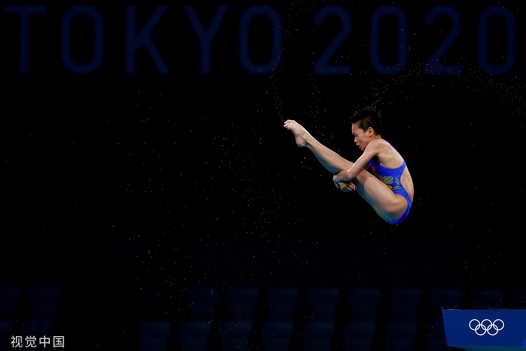 陈芋汐的第一跳多少有些小问题,入手需要再改进一些,最后得分为76.5分。