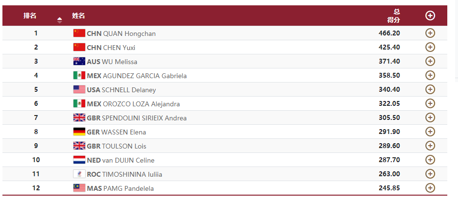导语:全红婵凭借全场碾压式的优势,5轮过后以466.20分轻松摘得金牌。队友陈芋汐以425.40分收获亚军。