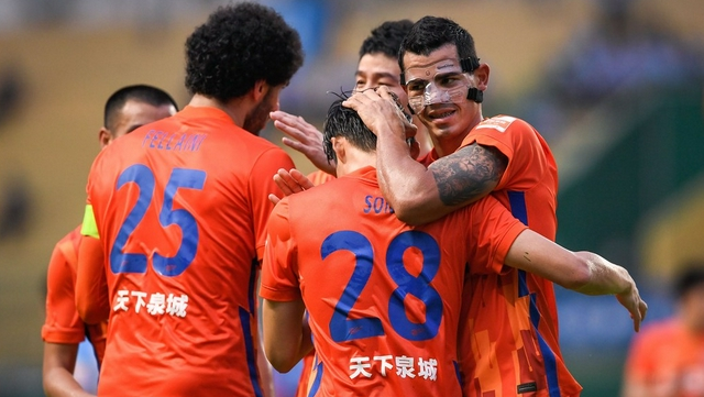 第70分钟,山东队扩大比分!广州城禁区混战中未能将高空球有效解围,贾德松门前巧妙扫射得手攻入加盟后处子球!广州城0-2山东泰山!