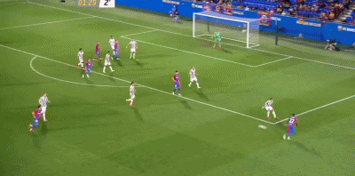 第57分钟,德佩开出角球,布莱斯维特后插上头球冲顶破门!巴塞罗那2-0尤文图斯。