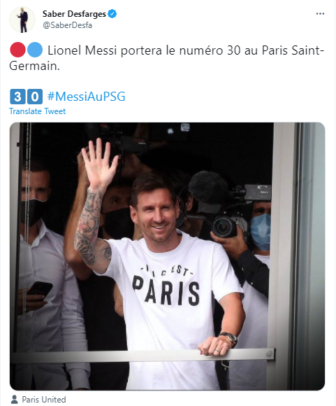 北京时间8月10日晚间,巴黎官方宣布签下阿根廷巨星梅西。根据据法国记者Saber Desfarges消息,梅西新赛季将身披巴黎30号球衣。